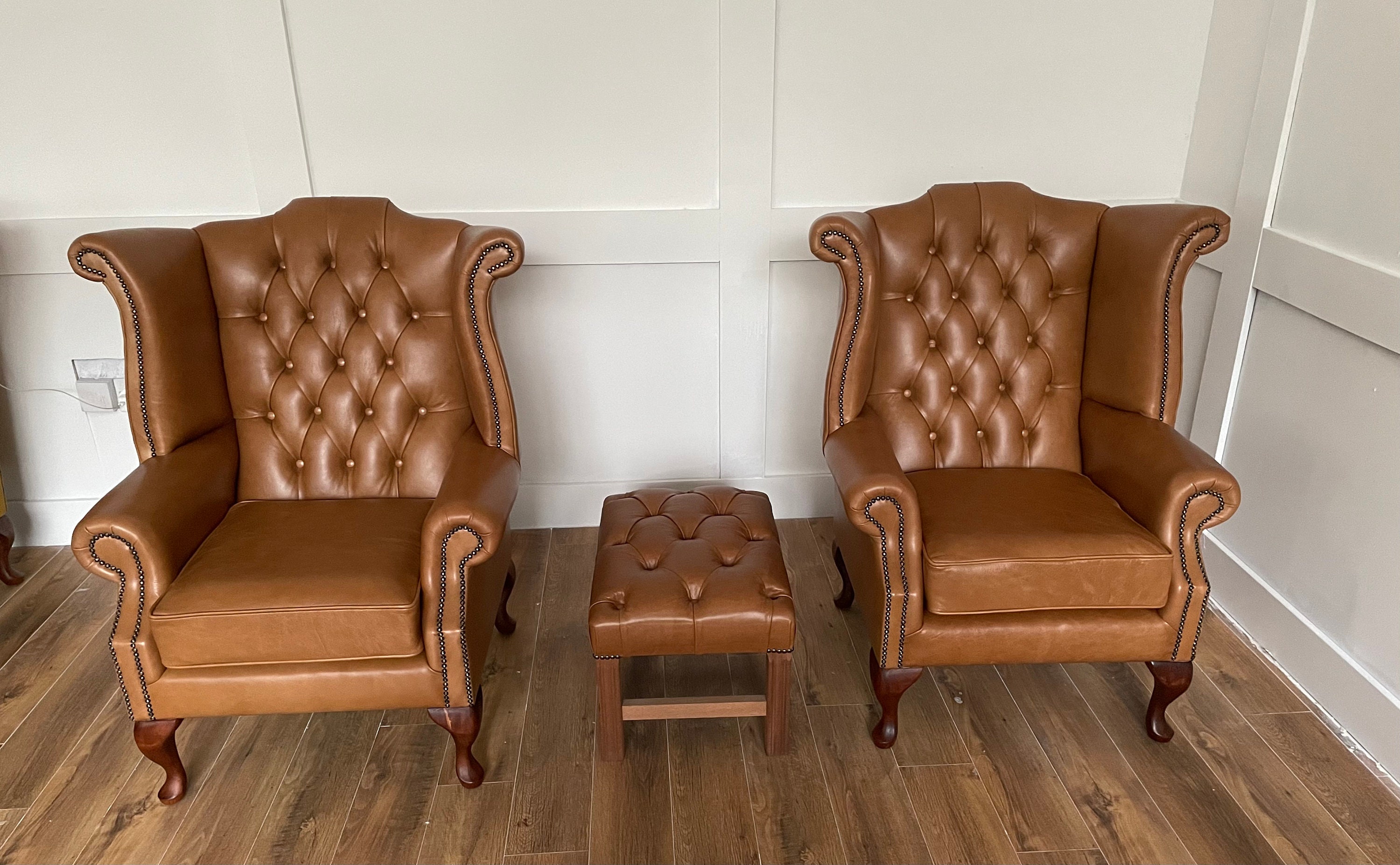 Tan Chesterfield Queen Anne Wing Chair Designersofas4u